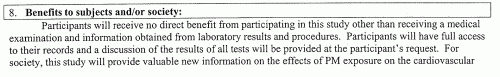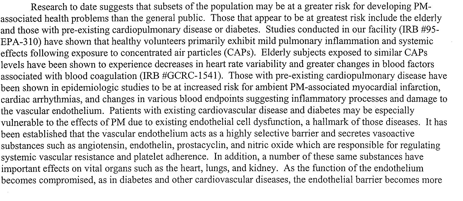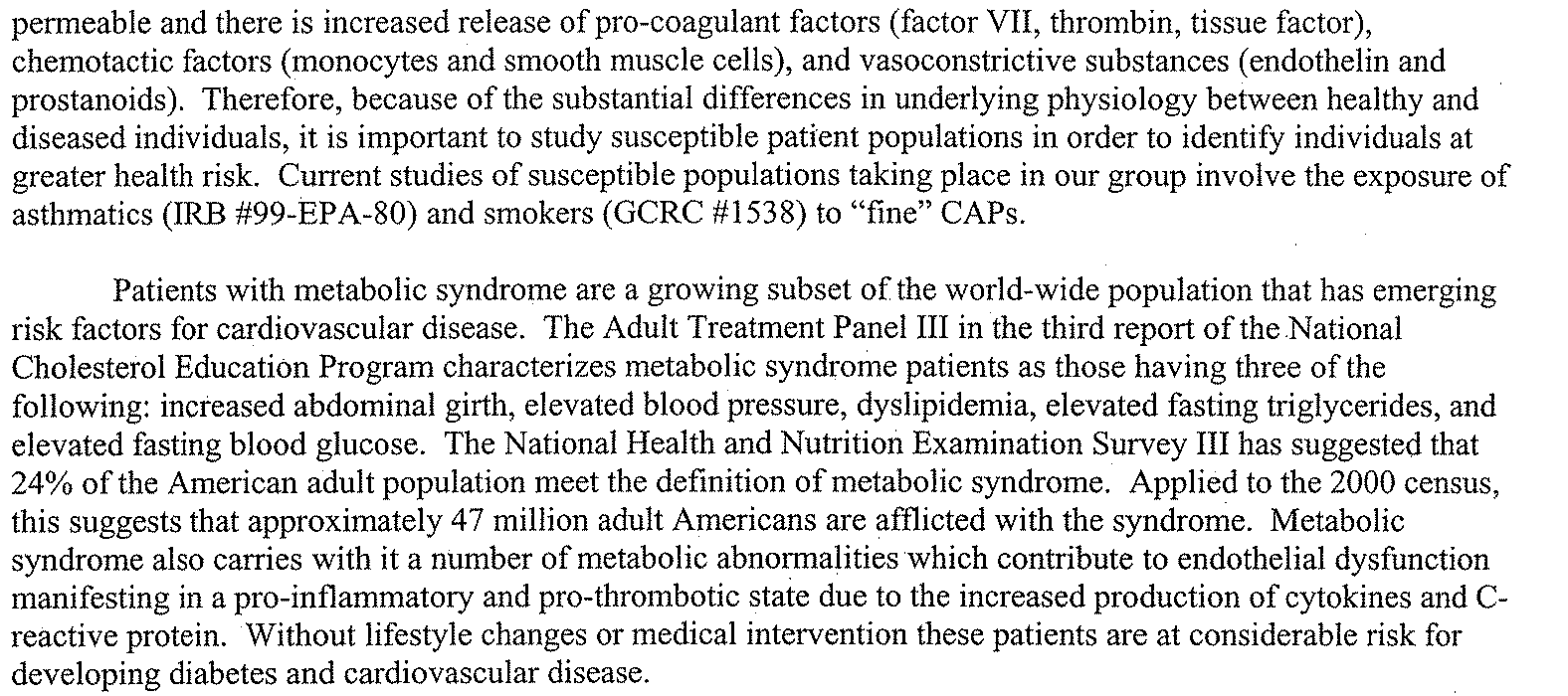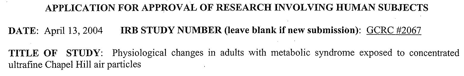 EPA told its University of North Carolina institutional review board from the beginning that PM2.5 was ultrahazardous as shown in the excerpts from this April 2004 application for IRB approval of exposing adults with metabolic syndrome to PM2.5 [Click to enlarge the image]: