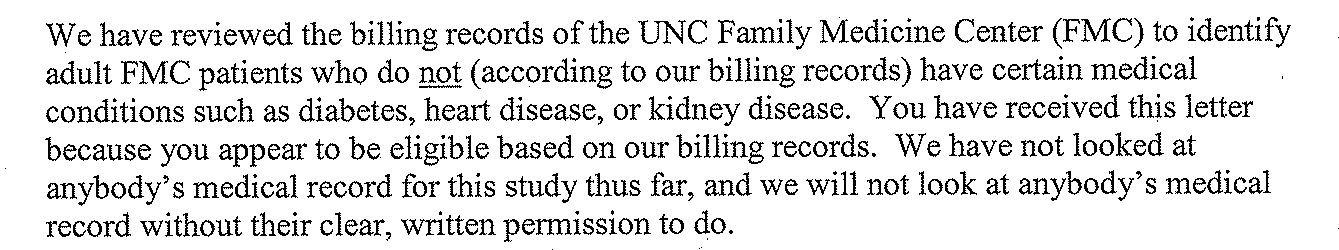 Note how EPA and UNC explain that they didn’t violate the privacy rules of the Health Insurance Portability and Accountability Act of 1996 as follows:
