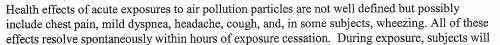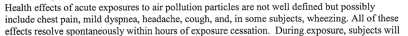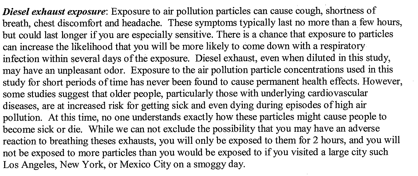 As in the case of PM2.5 and ultrafine particles, the EPA discloses to the UNC IRB just how dangerous it believes air pollution, PM2.5, ultrafine particles and diesel exhaust to be.