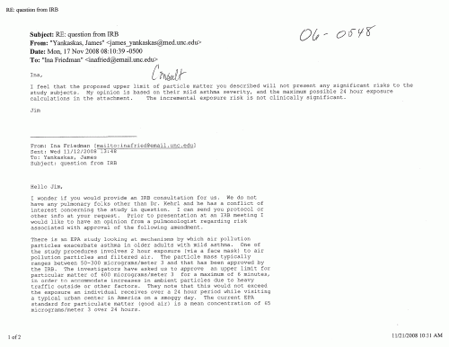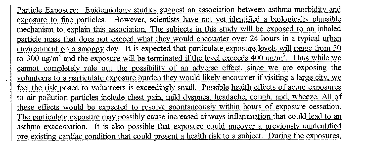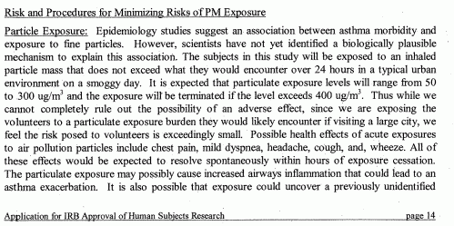 But don’t think that the UNC IRB went to any great length to check expert opinion on the risks of PM2.5: