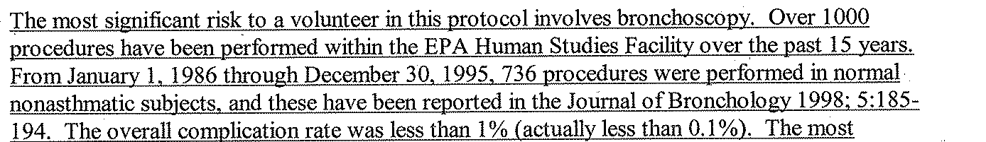 EPA also fails to inform the UNC IRB of the deadly risk that is inhalation of PM2.5: