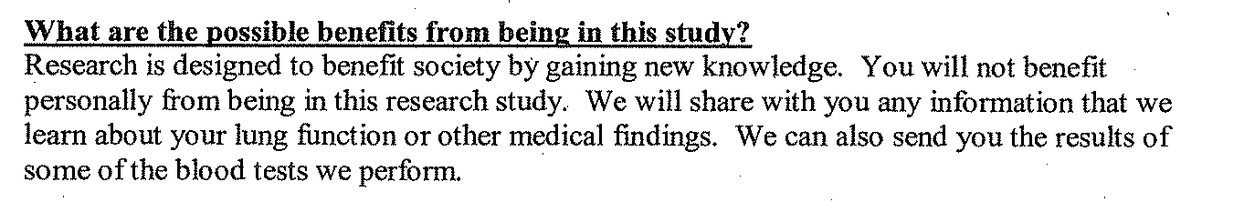 As usual, the study subjects were not intended to benefit from the experienced of being poisoned by EPA (except for the standard $12/hour fee plus expenses):