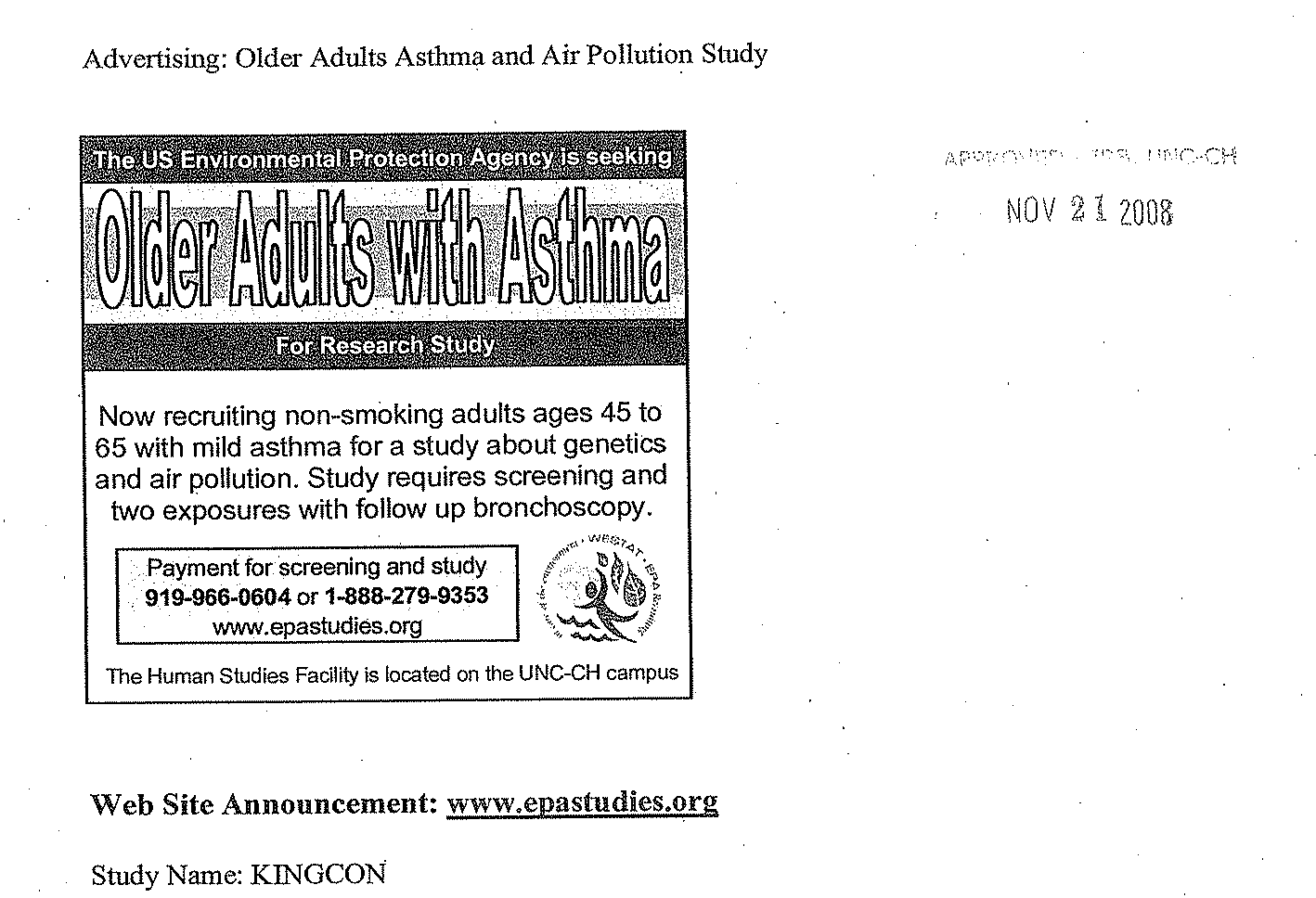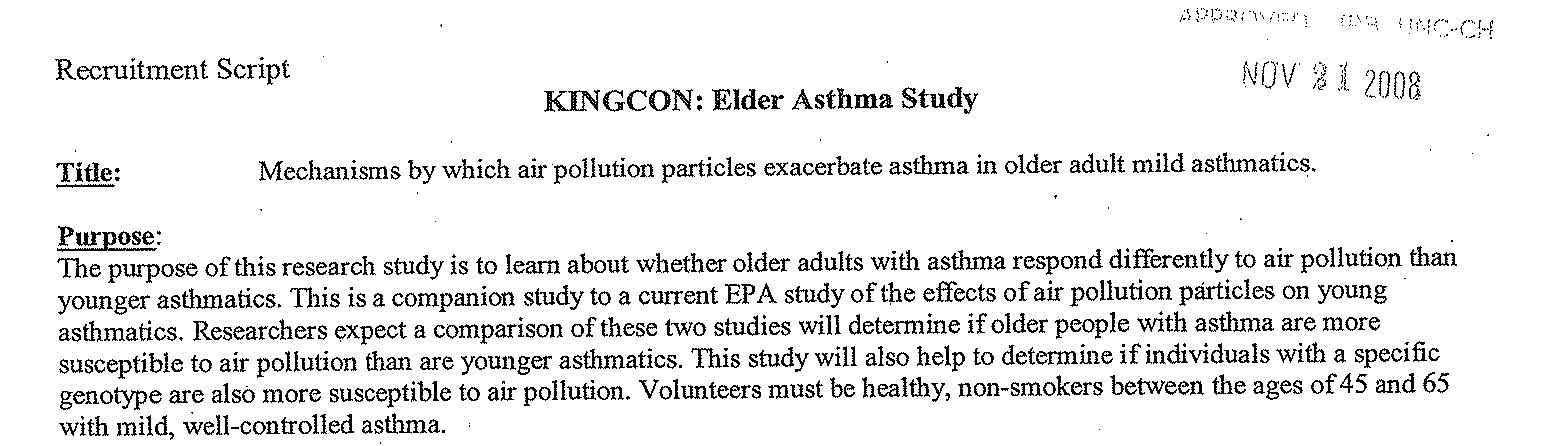 Check out this IRB-approved recruitment script in which EPA discloses that it wants to ultimately compare the elderly guinea pigs against younger guinea pigs: