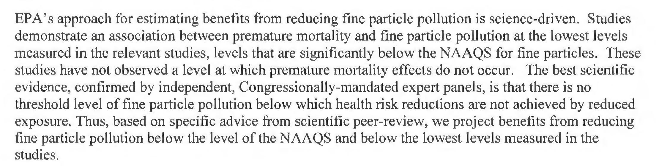 EPA used a similar reliance on PM2.5 to justify its December 2011 Mercury Air Toxics Standard as shown in the excerpt below from the EPA’s web site.
